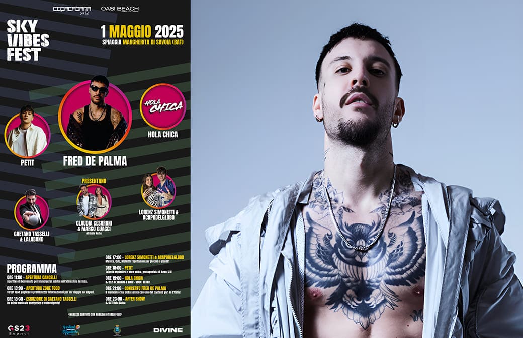 MARGHERITA DI SAVOIA - Giovedì 1 maggio sul lungomare di Margherita di Savoia, nell’area che comprende il Copacabana Suite e l’Oasi Beach, si terrà lo Sky Vibes Fest, una manifestazione organizzata da Gs23 Eventi, con artisti di fama nazionale, all’interno dell’undicesima edizione del Festival Internazionale dell’Aquilone.