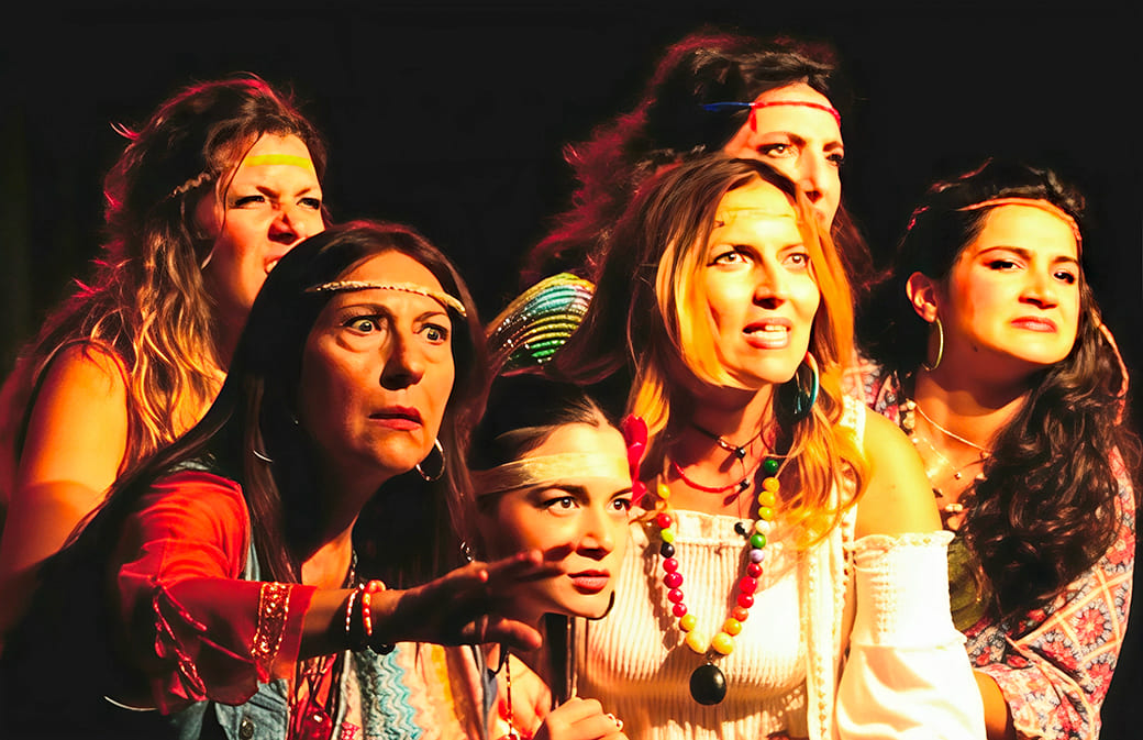 Ispirata alla celebre commedia di Aristofane, l’opera viene trasportata tra gli anni ’60 e ’70, in un’epoca densa di fermenti culturali e battaglie ideologiche. Sullo sfondo di quell’atmosfera hippy, tra costumi sgargianti e arrangiamenti musicali di celebri hits, si consuma il più singolare degli scioperi: quello del sesso, proposto dalla protagonista Lisistrata, il cui nome - come ricorda la regista - significa “colei che scioglie gli eserciti”. Un’azione simbolica e provocatoria, che spinge uomini e donne a interrogarsi sulle ragioni della guerra e sull’urgenza della pace.