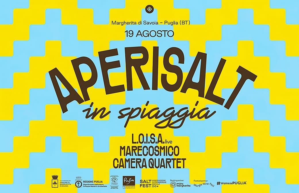 MARGHERITA DI SAVOIA - Torna il 19 agosto “AperiSalt”, l’aperitivo estivo organizzato dall’Associazione Salt Fest APS, quest’anno nella nuova location della spiaggia libera al Belvedere (via Valerio). L’evento, patrocinato da Regione Puglia, Puglia Promozione e Comune, proporrà cultura, sport, musica live, degustazioni e attività per bambini.