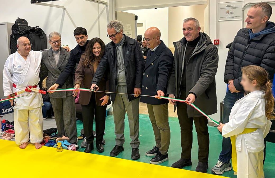 La palestra, come del resto tutto l’edificio scolastico, è stata sottoposta ad interventi di adeguamento sismico e rinforzo strutturale, sia interno che esterno. A partecipare al simbolico taglio del nastro il sindaco Vito Malcangio, l’europarlamentare Francesco Ventola, il presidente del Consiglio comunale Michele Vitrani, l’assessora allo Sport Antonella Cristiani, i consiglieri comunali Vincenzo Gallo e Daniele Serlenga, la dirigente scolastica Nadia Landolfi e il presidente del CAS Sabino Silvestri.