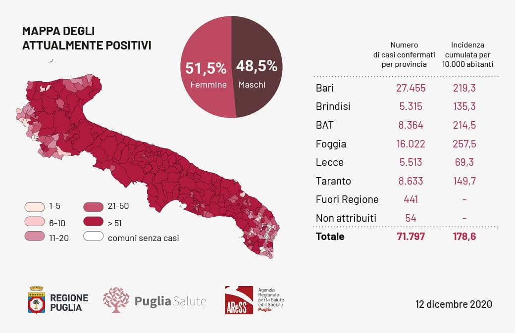 BARI - Il presidente della Regione Puglia, Michele Emiliano, sulla base delle informazioni del direttore del dipartimento Promozione della Salute, Vito Montanaro, informa che oggi - sabato 12 ...