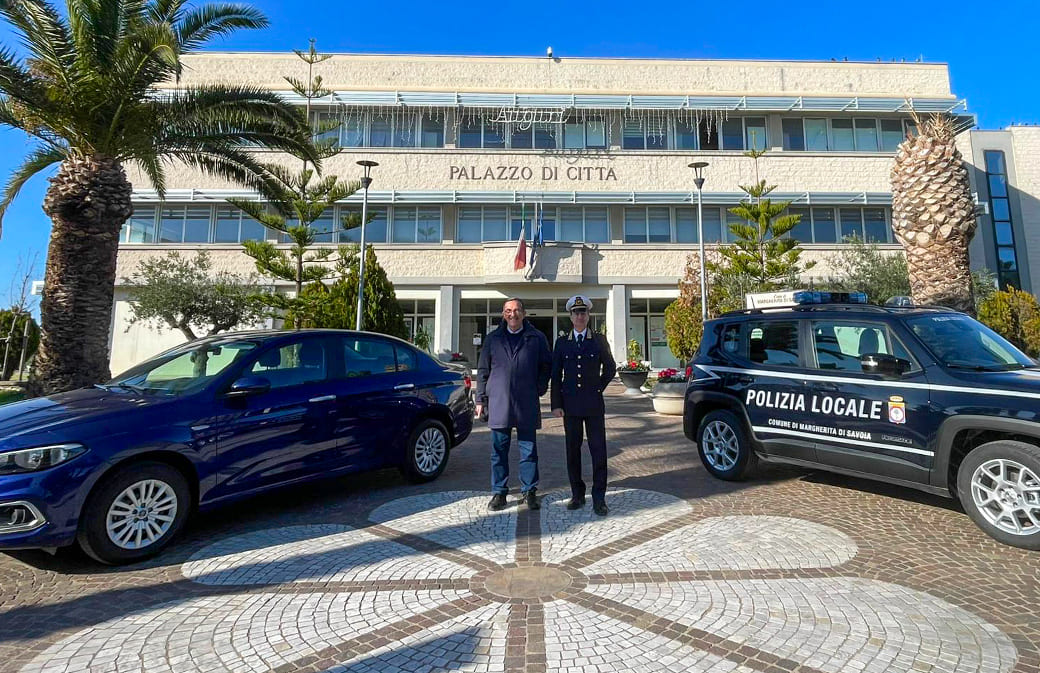 MARGHERITA DI SAVOIA - Da oggi il Comune di Margherita di Savoia ha in dotazione due nuovi veicoli, ai quali si aggiungerà a breve un terzo, a disposizione del Comando della Polizia Locale: si tratta di due Fiat Tipo e di una Jeep, due delle quali con i colori di istituto ed una destinata ai servizi di Polizia Giudiziaria e di collegamento con altri Enti ed Istituzioni.