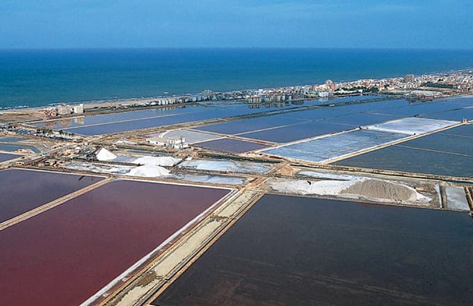 Vasche contigue disegnano il paesaggio, in un rincorrersi di linee e rettangoli che variano il loro colore dal blu profondo fino al rosso scuro per la presenza dell'alga unicellulare Dunaliella salina, che qui agisce da artista colorando il territorio e perfino il piumaggio degli splendidi fenicotteri rosa, inquilini d'eccezione della Zona Umida.
