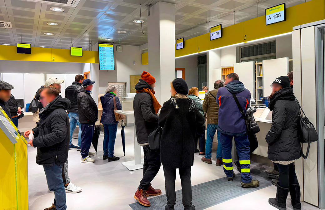 Nell’ambito degli interventi si è proceduto ad una completa riorganizzazione degli spazi, finalizzata ad ottimizzare la fruizione dell’ufficio con particolare attenzione al miglioramento del comfort ambientale e alla facilitazione dell’accesso ai servizi. In quest’ottica, tra le altre opere, si inseriscono la nuova configurazione della linea di sportelleria - con altezze ribassate per agevolare tutti i segmenti di clientela e una postazione di lavoro ergonomica per favorire una corretta postura - e una pavimentazione tattile per non vedenti e ipovedenti.
