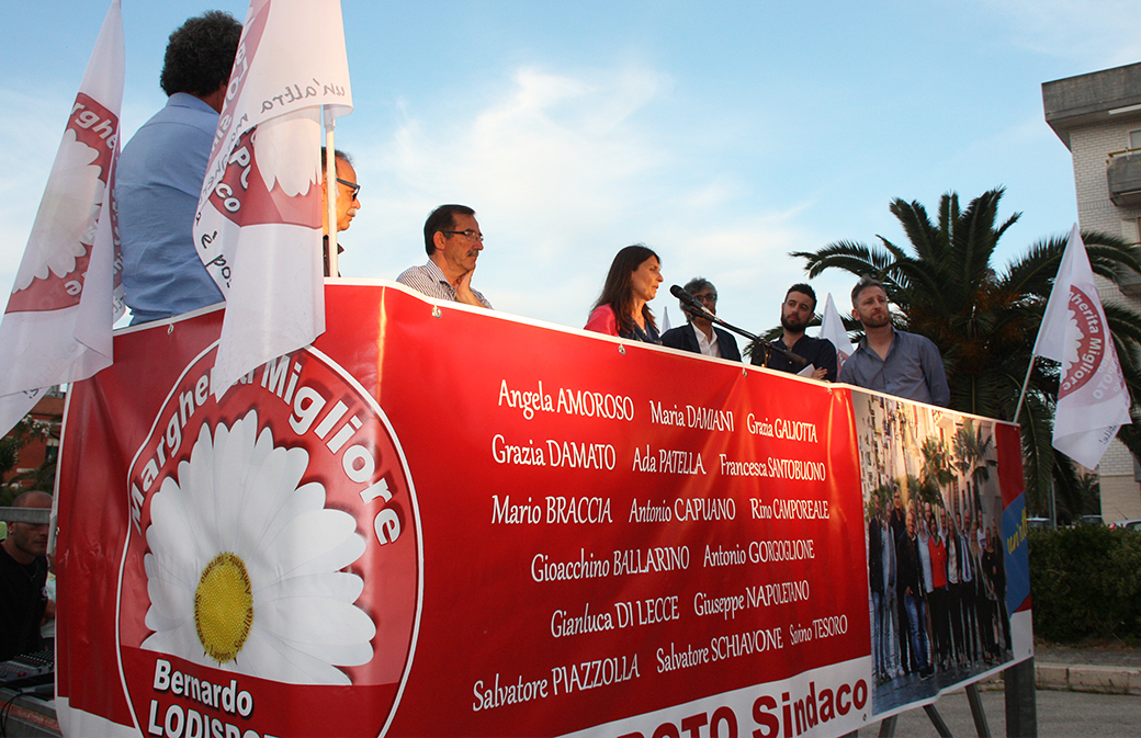 La chiusura, come di consueto, è toccata al candidato sindaco Bernardo Lodispoto che, fatto oggetto nei giorni scorsi di attacchi personali, ha replicato con grande fair play: «Non mi interessa rispondere a discorsi di bassa macelleria ma intendo pensare solo ai problemi di questo paese. Il tessuto sociale di Margherita di Savoia è completamente sfilacciato, ma io amo il mio paese e bisogna avere l’onestà di dire alla gente che nulla sarà facile dopo il voto del 10 giugno. Non sono i big della politica che possono coprire le lacune di un programma elettorale copiato, né costose agenzie di marketing pagate per studiare strategie a tavolino: la nostra campagna elettorale la giocheremo sulle idee e sulle proposte, andando nei quartieri per raccontare cosa non è stato fatto in questi cinque anni e per spiegare cosa vogliamo fare. Il primo tema deve essere quello della sicurezza: una località turistica non può prescindere da questo. È indispensabile predisporre un servizio di videosorveglianza per monitorare i flussi in entrata e in uscita dal paese, ma prima ancora di questo è necessario varare un piano per la sicurezza che presenteremo più dettagliatamente la prossima settimana e che verrà attuato in estate con la collaborazione delle Forze dell’Ordine che stanno già svolgendo un servizio encomiabile».