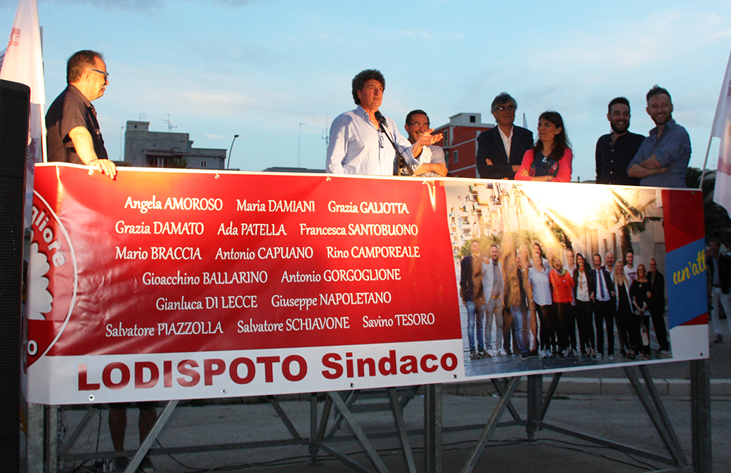 L’ultimo passaggio di Lodispoto è stato destinato al tema dei suoli, molto sentito in zona Regina: «Il 21 maggio 1998 venne sottoscritto un verbale dal sindaco di allora Nunziante Giacomantonio e da altri consiglieri comunali di maggioranza e di opposizione, fra cui anche io, in cui si sanciva che in virtù della Legge Formica quelle aree dismesse erano di proprietà dell’Ente locale e che nulla era dovuto per aree non più utilizzate da anni e che invece il Comune aveva valorizzato attraverso la realizzazione di alloggi in regime di edilizia popolare o di servizi essenziali. D’altra parte non era logico pensare che noi avremmo dovuto pagare per entrare in possesso del nostro territorio. E difatti di lì a poco avvenne la trascrizione dell’atto presso la Conservatoria. I tanto vituperati amministratori della Prima Repubblica hanno fatto tanto perché ai nostri concittadini fosse concessa la possibilità di costruirsi una casa sulle aree dismesse della Salina. Anche questa vicenda dimostra come ci sia bisogno di un voto utile per il futuro del nostro paese: ci attendono grandi sfide ma noi porteremo il nostro orgoglio per le strade in modo da determinare un nuovo percorso per Margherita di Savoia!».