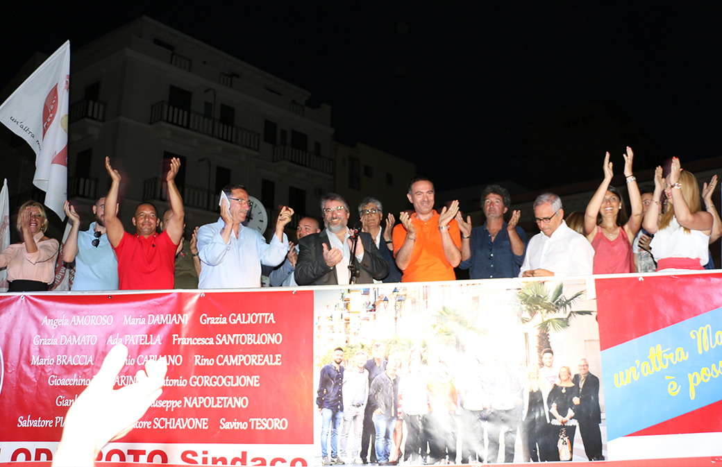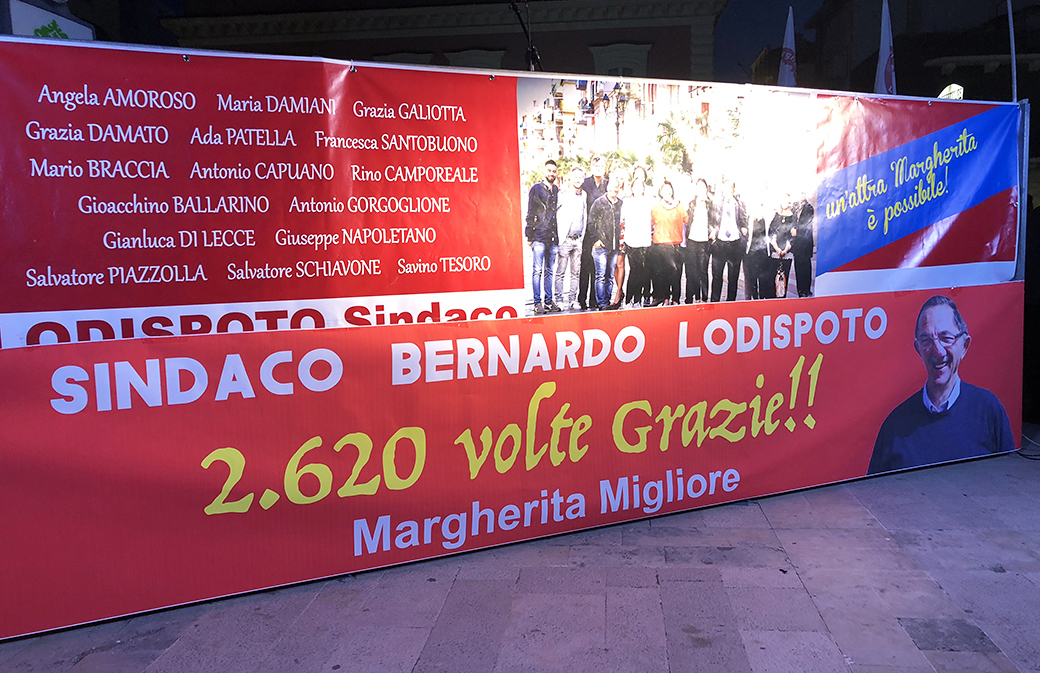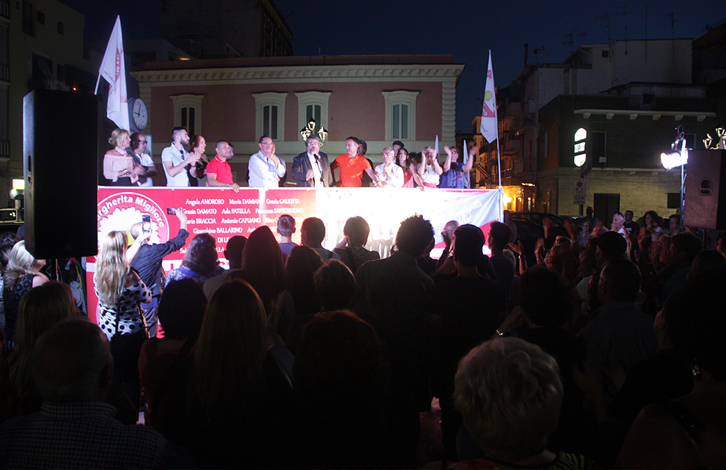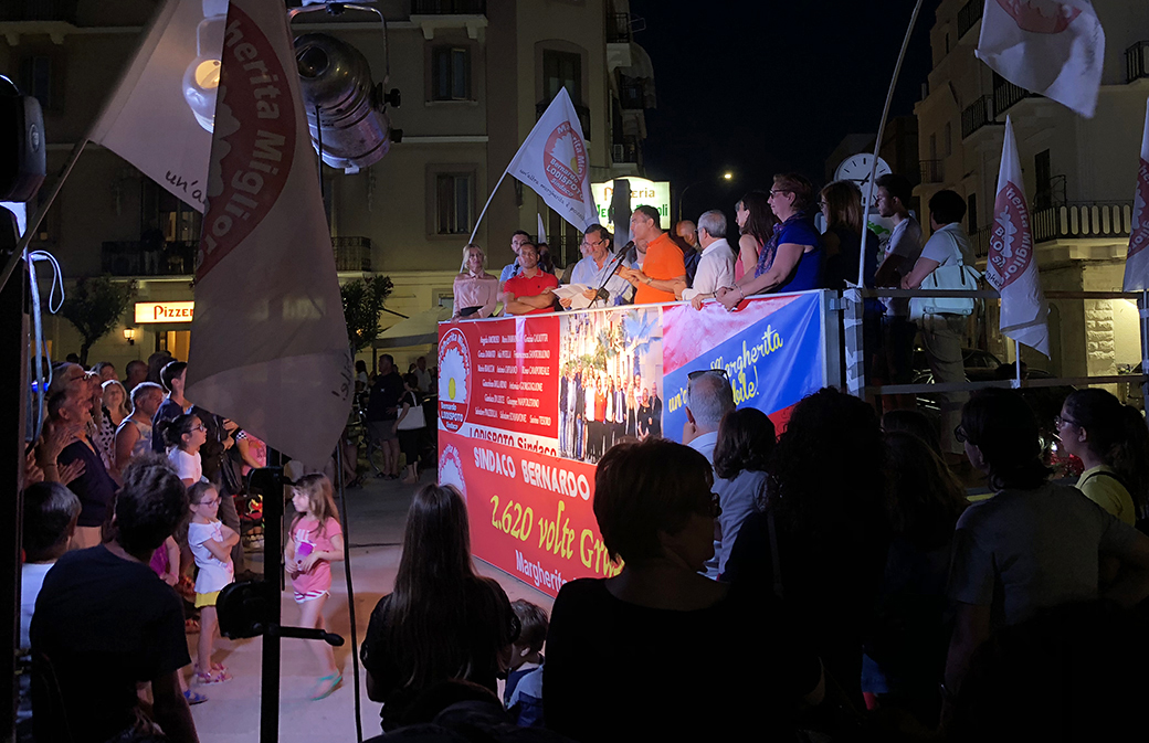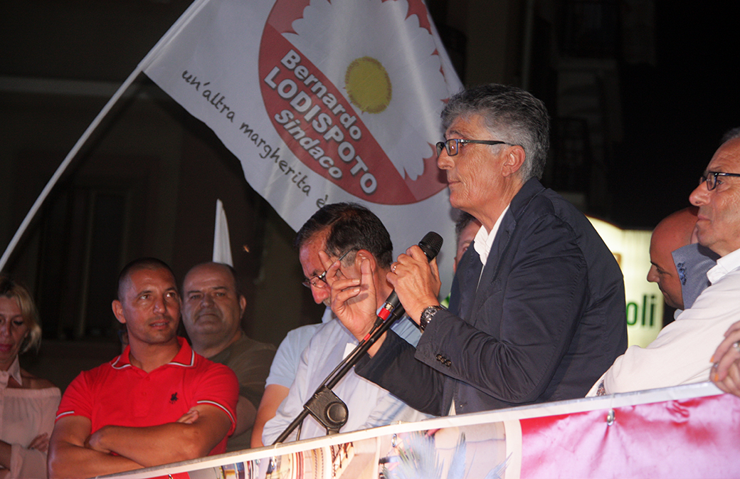 Ogni candidato ha poi rivolto un pensiero ed un impegno alla folla festosamente radunatasi in Piazza Libertà. Ha concluso il neo sindaco di Margherita di Savoia Bernardo Lodispoto che, nel ringraziare i cittadini, tutti i candidati ed il coordinamento della lista, non ha nascosto la propria emozione ma neppure le difficoltà di cui è pienamente consapevole d’essere atteso: «Sono felice di sottolineare il bel gesto da parte degli altri candidati sindaci Carlo Ronzino, che ha telefonato per congratularsi dicendosi pronto ad un atteggiamento collaborativo, ed Antonella Cusmai che assieme ai suoi candidati è venuta di persona a rivolgerci gli auguri di buon lavoro: un atteggiamento di fair play che rende onore ai miei ex competitori e che mi auguro possa essere l’inizio di un cammino per tutte le forze rappresentative di questo paese. La nostra comunità ha bisogno di mettere da parte i personalismi per camminare verso la realizzazione di obiettivi comuni in cui ognuno deve essere consapevole di dover fare la sua parte per poter cambiare le cose. I compiti che ci attendono sono tanti e gravosi: subito dopo la proclamazione ho incontrato il commissario prefettizio ed il segretario comunale che mi hanno prospettato la situazione soprattutto dal punto di vista finanziario, evidenziando come ci siano già tre milioni di anticipazioni di cassa da coprire. Il primo argomento da affrontare sarà relativo al Piano di Zona e mi incontrerò immediatamente con i sindaci di Trinitapoli e San Ferdinando di Puglia per poter garantire la necessaria assistenza agli anziani, ai disabili e alle famiglie in difficoltà ma anche per restituire centralità al nostro Comune che, all’interno del Piano di Zona, in questi anni è rimasto totalmente fermo. Le altre urgenze che sono state portate all’attenzione riguardano ovviamente la raccolta dei rifiuti, della quale abbiamo abbondantemente parlato in campagna elettorale e l’organizzazione di un cartellone per l’Estate Margheritana, per il quale ci affideremo direttamente alle associazioni locali riservando al Comune un ruolo di supervisione. Entro la fine della settimana, o al massimo all’inizio della prossima, presenteremo ufficialmente la nuova Giunta comunale perché c’è la necessità di mettersi subito al lavoro e rimettere in moto le istituzioni per affrontare tutti i problemi che ci attendono. Ma il vostro consenso mi dà la convinzione e la forza per fronteggiare queste sfide: ci aspettano cinque anni di grande impegno ma collaborando per migliorare il nostro paese riusciremo a scrivere una nuova storia per Margherita di Savoia!».