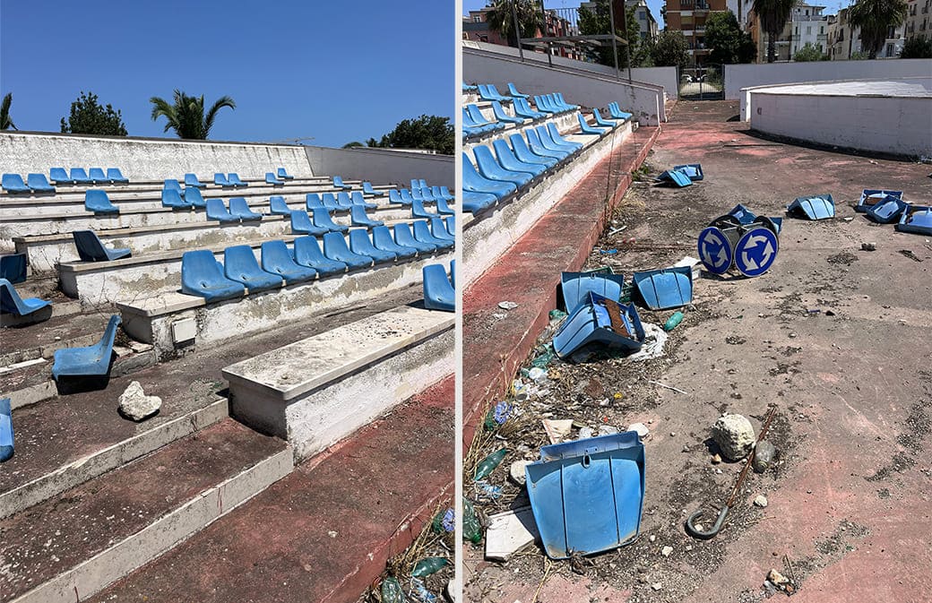 MARGHERITA DI SAVOIA - «Questa è la situazione dell’anfiteatro comunale. Un’opera nata come un fiore all’occhiello della cultura e dell’intrattenimento della nostra città. Questa struttura si trova dietro la sede di Palazzo di Città in pieno stato di abbandono e incuria.