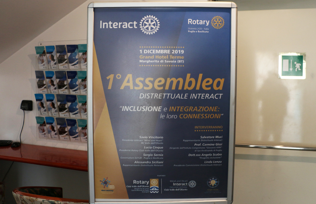 MARGHERITA DI SAVOIA - La prima grande Assemblea Distrettuale dei Rotary Club Interact del Distretto 2120 di Puglia e Basilicata, composta da giovani che vanno dagli under 12 agli under 18, si è svolta l’1 dicembre scorso a Margherita di Savoia presso il Grande Hotel Terme. (Video)