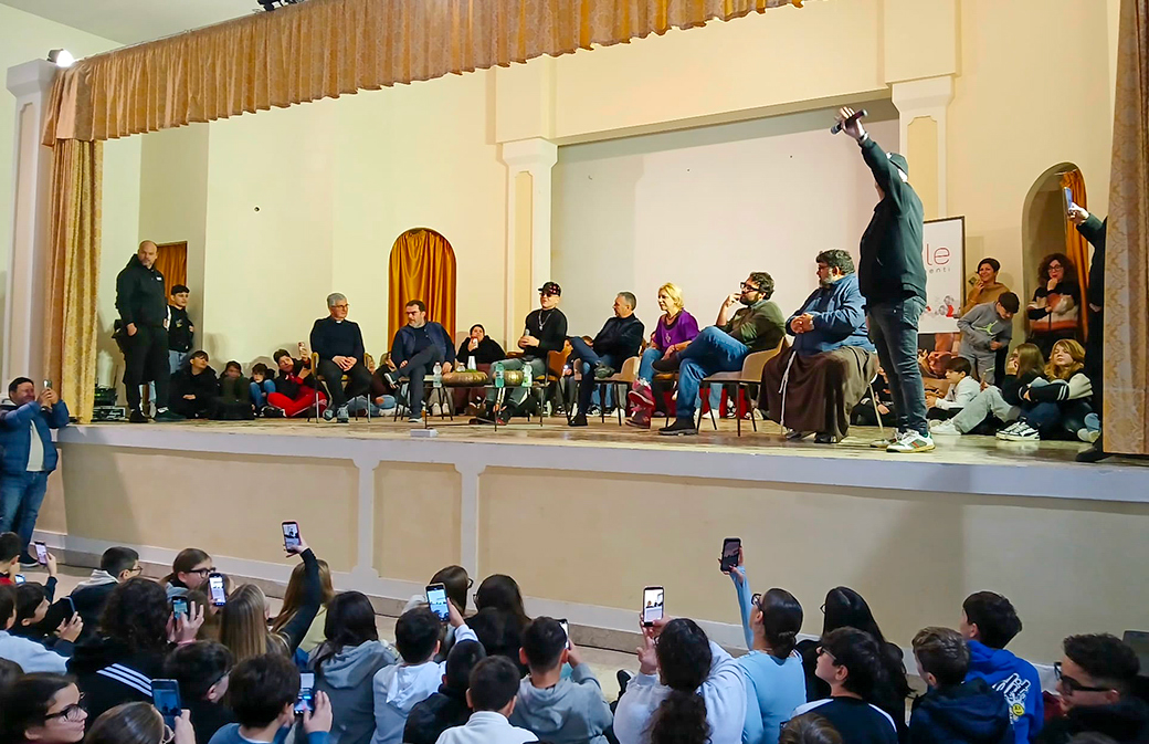 Il dialogo con gli studenti, arricchito dall’ascolto di alcuni brani, ha acceso l’entusiasmo della platea, trasformando l’auditorium in uno spazio vivo, dove il linguaggio della musica ha incontrato quello dell’educazione civica.