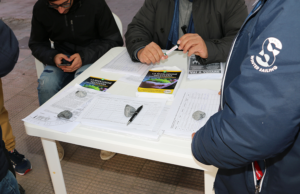 In questa occasione, il gruppo è sceso nuovamente in piazza con il suo gazebo per raccogliere le firme utili alla petizione contro il progetto della centrale elettrica offshore “Margherita di Savoia”.