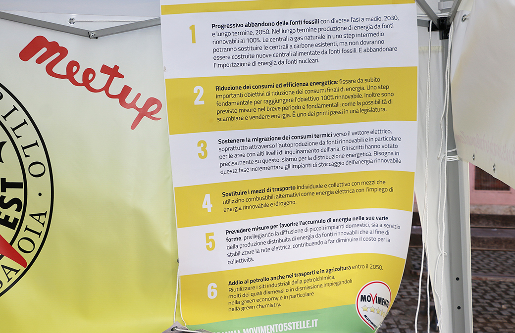 Il gruppo, condividendo il Programma Energia del Movimento 5 Stelle, appoggia la politica di incremento delle Fonti Energetiche Rinnovabili per giungere al 2050 alla eliminazione delle fonti di energia fossili, e, sempre secondo tale politica, ritiene che le FER, coerentemente, non debbano contrastare con la tutela paesaggistica di un territorio già fin troppo martoriato da decenni di lassismo e speculazioni.