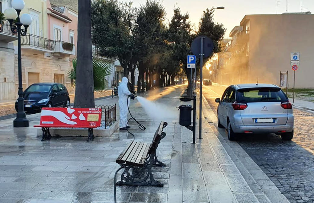 TRINITAPOLI - Come annunciato dal sindaco Emanuele Losapio, durante il fine settimana sono in corso le operazioni di sanificazione dei punti di maggiore aggregazione, come strade principali ed aree di verde attrezzato. Domani mattina presto, le operazioni interesseranno specificatamente gli ingressi scolastici, per garantire la massima sicurezza alla ripresa delle lezioni. (Foto)