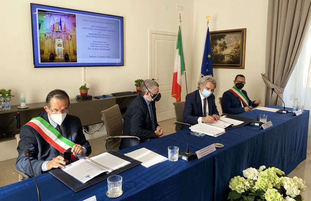 Il Sottosegretario di Stato al Ministero dell’Interno, On. Ivan Scalfarotto, ha dichiarato: “Queste son terre che tengo particolarmente a cuore ed è importante per me essere qui personalmente a testimoniare l’attenzione del governo per questa provincia. La delega agli Enti locali, che la Ministra Lamorgese mi ha fatto l’onore di affidarmi, costituisce per me un’importante occasione per iniziare un rinnovato lavoro di squadra con le istituzioni presenti sul territorio. Questa è una terra dalle grandissima qualità e potenzialità, fatta di gente laboriosa, intraprendente e onesta ma allo stesso tempo un territorio complesso, dove operano bande criminali che incidono pesantemente sulla vita delle persone. Lo Stato, con l'impegno massimo delle forze di polizia, dedica alla Bat una grande attenzione e non sottovaluta di certo la presenza della criminalità organizzata. Oggi sono qui nella Prefettura di Barletta Andria Trani a sottoscrivere i patti per la sicurezza urbana dei comuni di Margherita di Savoia e San Ferdinando di Puglia. Firmare questi accordi è un modo innovativo ed efficace per creare comunità, civismo, bellezza e decoro del territorio. Sono patti che hanno il pregio di dire a tutti che ciascuno di noi è chiamato ad una responsabilità individuale, ciascuno può e deve vivere la società in maniera consapevole e partecipe si suoi destini. Un idea semplice ma rivoluzionaria, un modo di vivere e sensibilizzare tutta la comunità - istituzioni locali, associazioni imprenditoriali, scuole, singoli cittadini - a rendersi personalmente partecipe e custode della sicurezza del proprio territorio”.