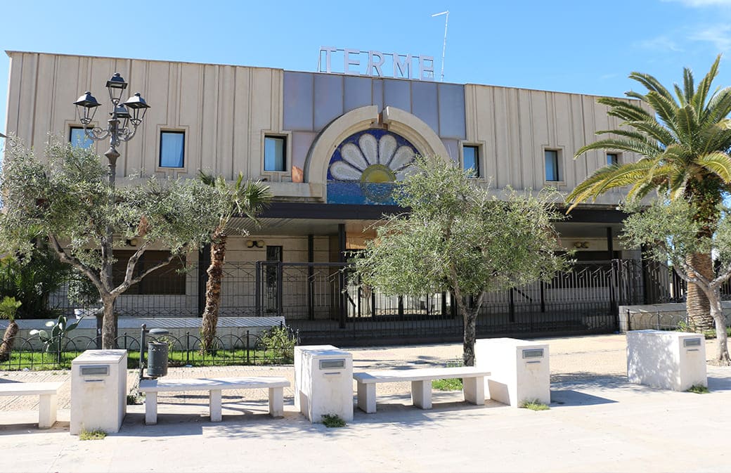 Lo stabilimento termale pugliese, convenzionato con il Servizio Sanitario Nazionale, si trova tra il mare e le saline più grandi d’Europa; un luogo di vacanza e cura grazie alla qualità dei fanghi e delle acque adoperati nello stabilimento termale per la prevenzione e la cura di numerose patologie. I fanghi maturano attraverso il contatto prolungato per decenni con le Acque Madri nelle vasche delle Saline e viene mineralizzato dalla deposizione dei sali in esso contenuti. Anche le acque termali utilizzate (classificate come acque salso-bromo-solfo-iodiche) provengono dai bacini delle saline e sono efficaci nella prevenzione e cura di diverse patologie delle vie respiratorie, dell’orecchio, dermatologiche, ginecologiche, dell’apparato osteoarticolare.