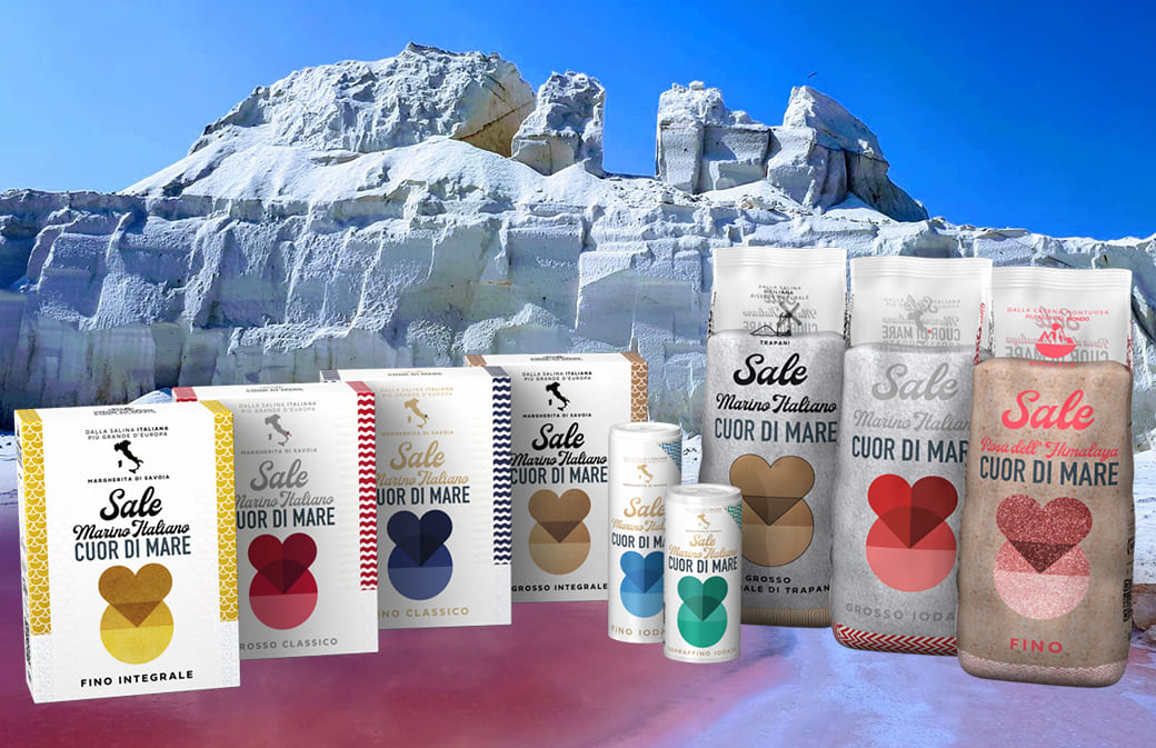 Il progetto di restyling si è sviluppato su due fronti: da un lato un nuovo logo che racchiudesse in sé, con una grafica pulita e geometrica, i simboli alchemici di Cuor di Mare, ossi la ciclicità della natura, con i suoi ritmi e i suoi elementi ancestrali strettamente legati fra loro - l’acqua, la terra, il sole - e il cuore, simbolo della passione e del lavoro dell’uomo. Dall’altro, il packaging, che oggi si presenta in una nuova veste grafica più accattivante, moderna, immediatamente riconoscibile e arricchita da una maggiore valorizzazione delle etichette, con l’aggiunta di preziose informazioni sul sale, la sua storia e i suoi usi, la tabella nutrizionale, ma anche ricette e sfiziose e curiosità. Il risultato è una comunicazione ancora più decisa e immediata, una maggiore visibilità dei prodotti della Linea e delle loro caratteristiche mantenendone la riconoscibilità a scaffale, e una maggiore forza e identità al marchio, che si conferma un brand di riferimento a livello nazionale per tutto il comparto.