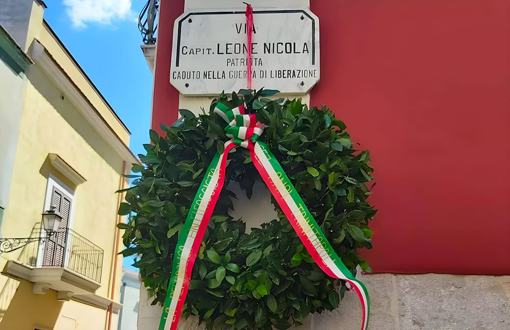 TRINITAPOLI - L’ANPI di Trinitapoli (Associazione Nazionale Partigiani) ha celebrato la ricorrenza della Festa della Liberazione dal Fascismo con la deposizione di una corona di alloro nei pressi della casa natale del Cap. Nicola Leone, martire del nazifascismo. Capitano di complemento dell’Esercito Italiano nell’Autocentro di Savona, Leone, dal 1 febbraio 1944, entra nelle file della 3ª Brigata Garibaldi “Liguria” come partigiano con il nome di battaglia “Piave”. Presto diventa comandante del II Distaccamento Novi alla “Benedicta”, con l’incarico di addestrare un centinaio di partigiani per combattere contro i tedeschi e i fascisti della Repubblica di Salò.