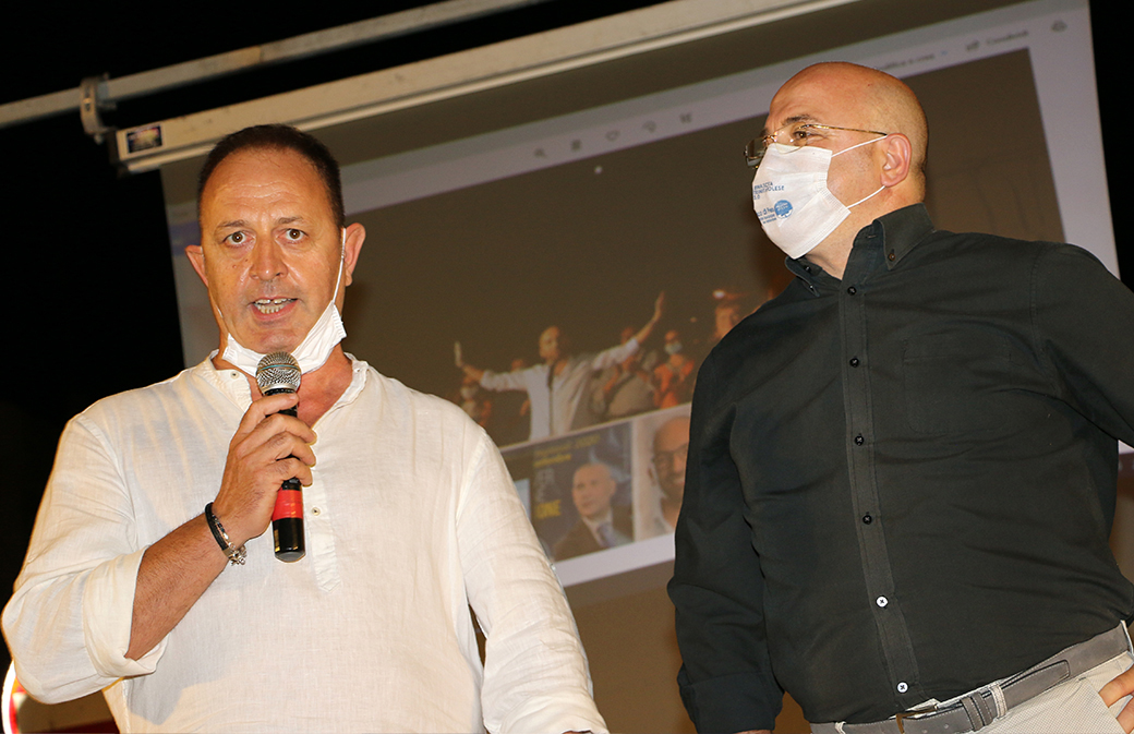 Viale Vittorio Veneto gremito, sia pur in ossequio alle vigenti disposizioni anti-Covid: grande partecipazione, indice di un entusiasmo coinvolgente.