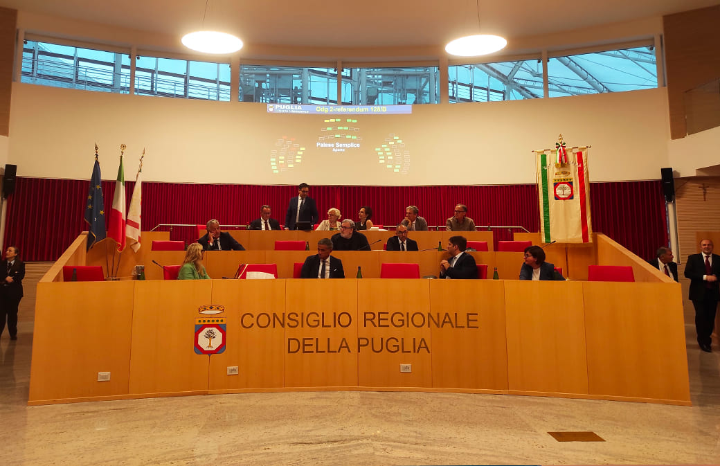 BARI - Con 30 voti favorevoli e 12 contrari, il Consiglio regionale ha deliberato la richiesta di indizione di referendum popolare ex art. 75 della Costituzione, per l’abrogazione totale della legge 26 giugno 2024, n. 86 recante “Disposizioni per l’attuazione dell’autonomia differenziata delle Regioni a statuto ordinario ai sensi dell’art. 116, terzo comma, della Costituzione”.