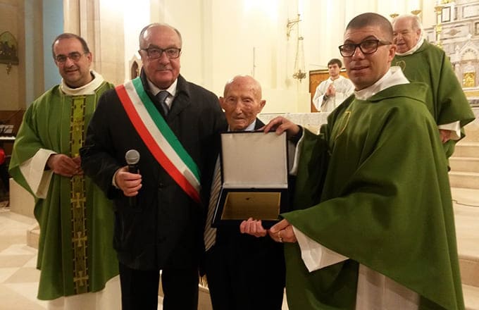 Nel giorno del suo 100esimo compleanno i figli Nella, Rino e Maria Teresa hanno voluto festeggiarlo con una santa messa nella parrocchia dell’Addolorata, stracolma per la circostanza, e, successivamente, con una cerimonia presso il Copacabana per il taglio della torta. Sull’uscio della chiesa è stato proprio Francesco a ricevere coloro che hanno inteso partecipare al rito sacro, celebrato dal parroco dell’Addolorata, padre Alberto Barbaro, dal vice, padre Alfredo Melis, e dal parroco di Maria Ausiliatrice, don Michele Schiavone.