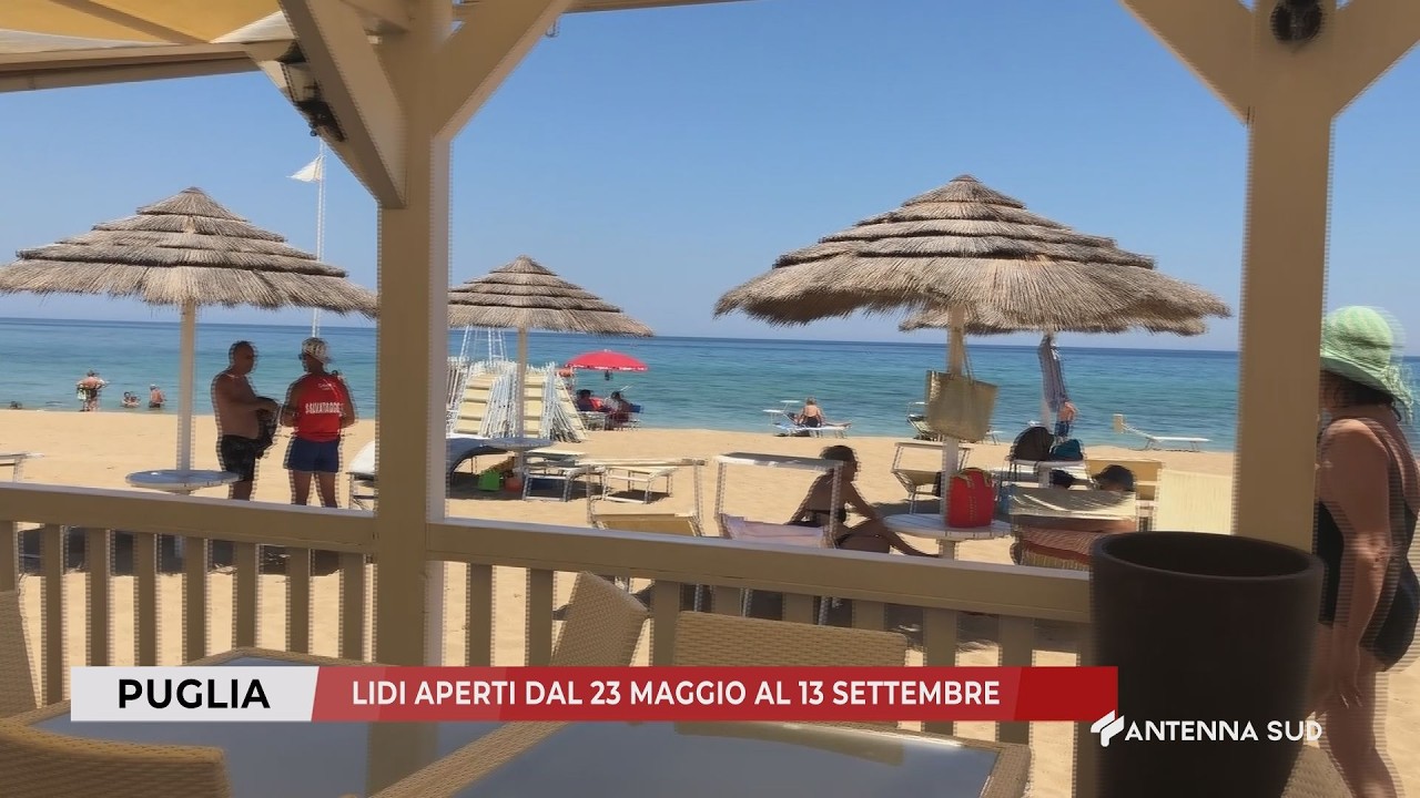 CorriereOfanto.it Puglia, stagione balneare al via: lidi aperti dal 23 maggio al 13 settembre, nuove regole su accessi e servizi Puglia, stagione balneare al via: lidi aperti dal 23 maggio al 13 settembre, nuove regole su accessi e servizi Watch the video Previous Article Tra le righe: Sognando il cinema, ecco l’opera del giovane regista Nicola di Feo Next Article Pasqua e Pasquetta in Puglia, il bilancio Coldiretti: 150 milioni per la tavola e ritorno alle tradizioni